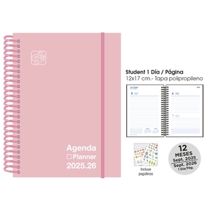 AGENDA ESCOLAR (2025-26) SENFORT CATALAN STUDENT UNICOLOR ESPIRAL tapa PP con GOMA 120x170 D/P PASTEL ROSA